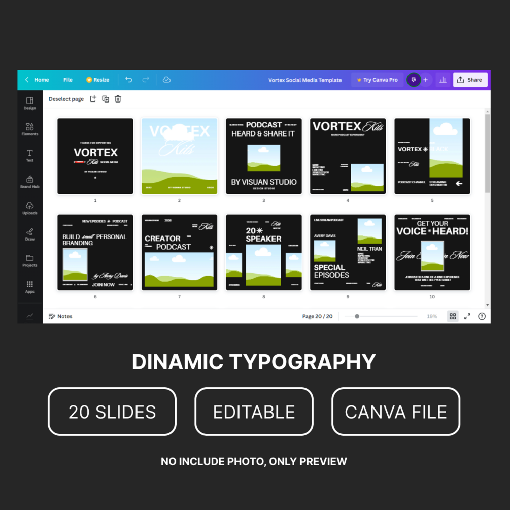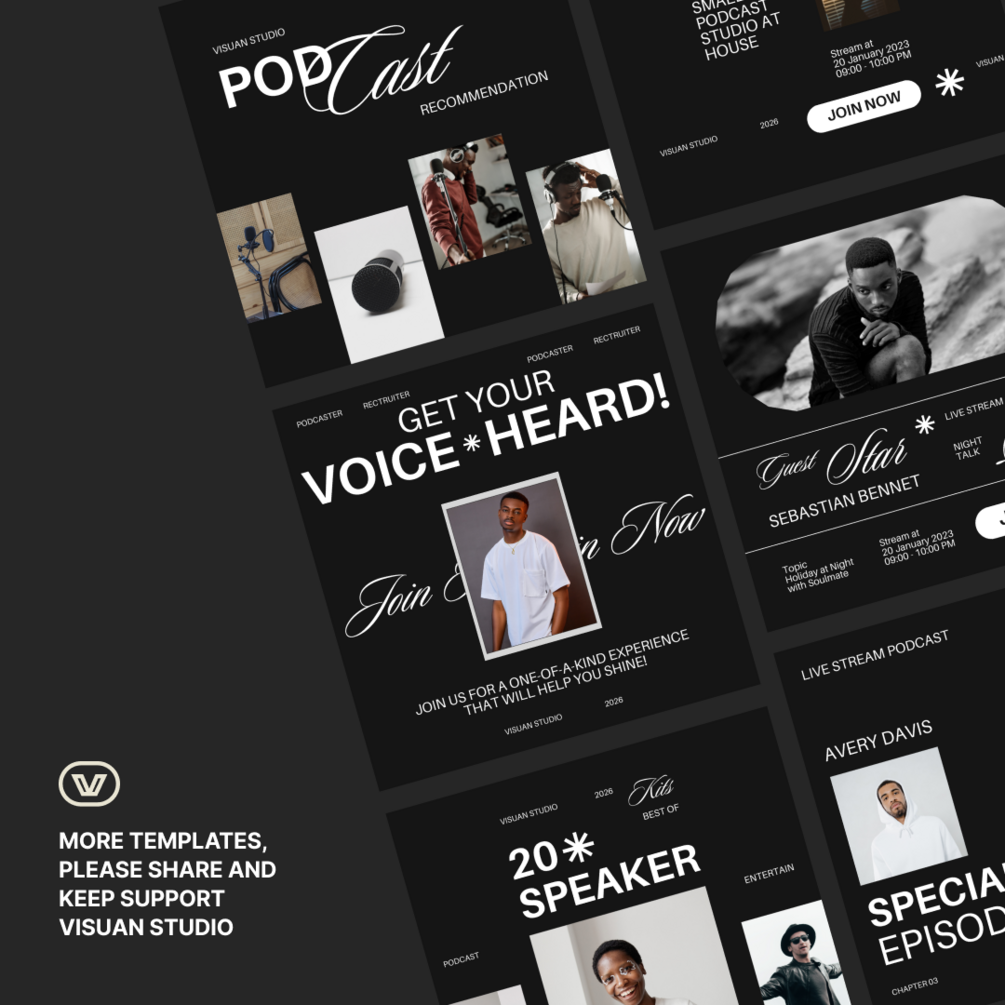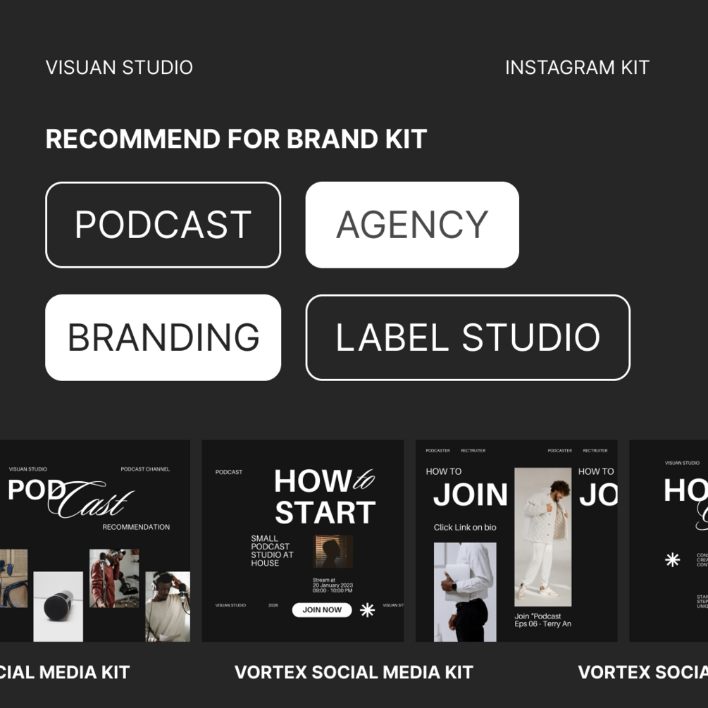 Generally, Vortex Template is perfect for a variety of purposes, such as Podcast, Branding, Label Studio.This template is easy to edit and customize based on your content needs.